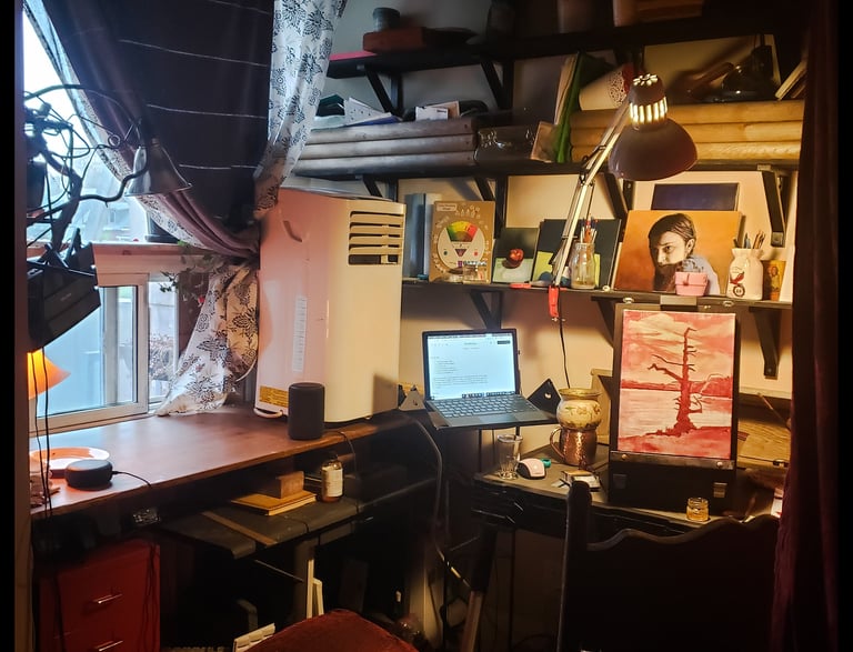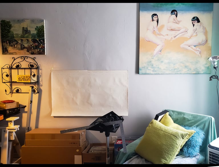 I offer private one-on-one painting instruction in your home or studio space. This is hands-on, individualized teaching focused on developing observational skills, building technical confidence, and finding your own visual language through sustained practice. I work with students at all levels, from complete beginners learning to hold a brush to advanced painters developing glazing techniques or exploring hybrid approaches combining traditional painting with digital post-production.